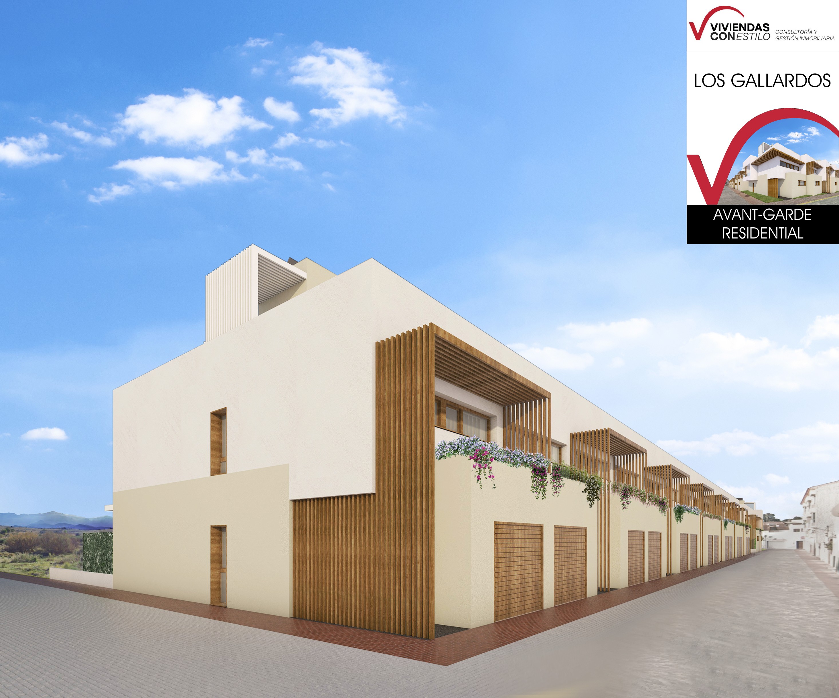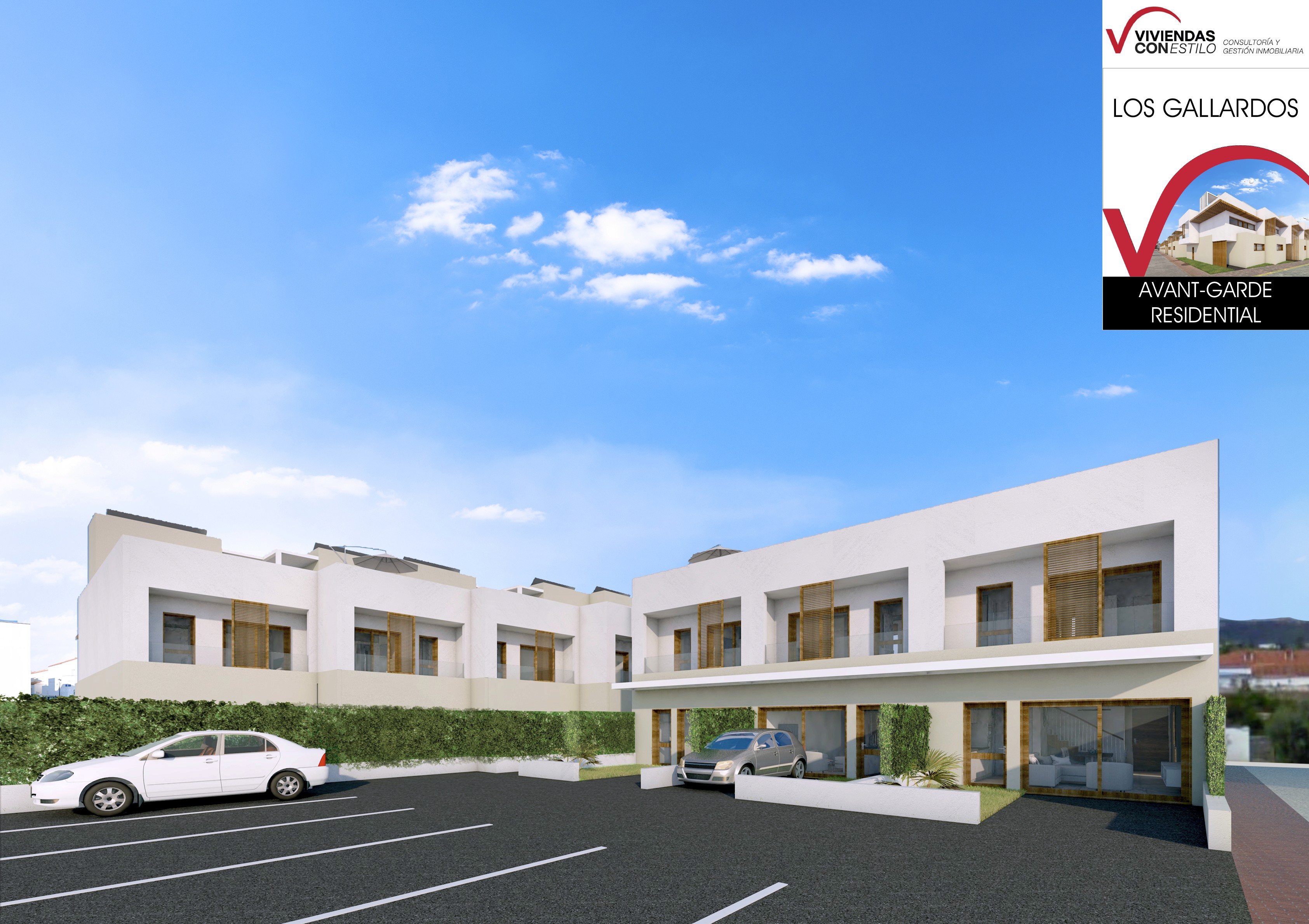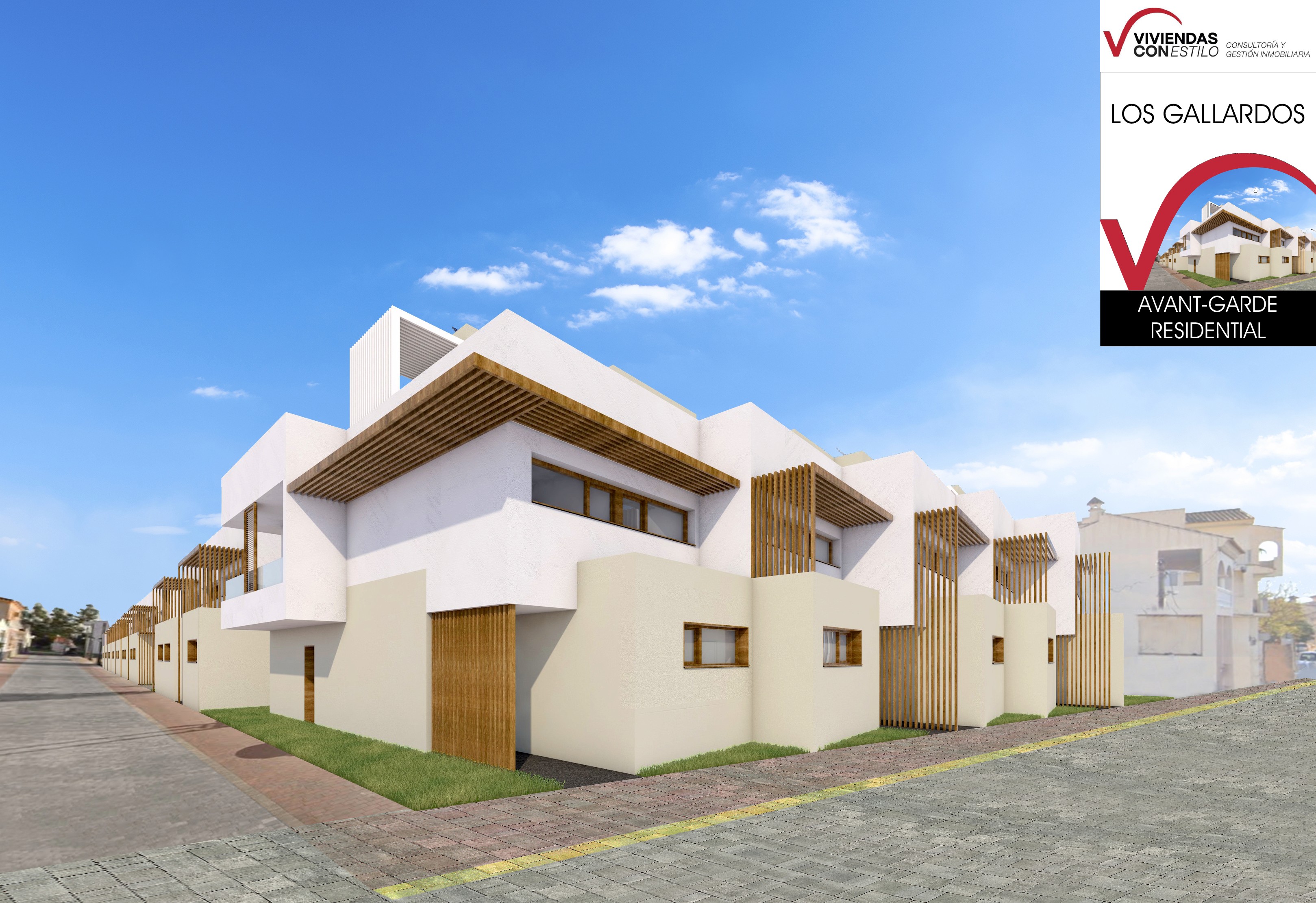 22 villas adosadas de 3 plantas con solarium, jacuzzi opcional y parking. Desde 188 m² en parcelas independientes.